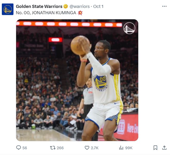 这是勇士队一号发布的库明加上赛季的视频,从视频中可以看到库明加的脸部棱角分明,他的手臂维度也比较细一些,所以,库明加这到底是胖了还是增肌成功了?【我个人觉得是发胖】