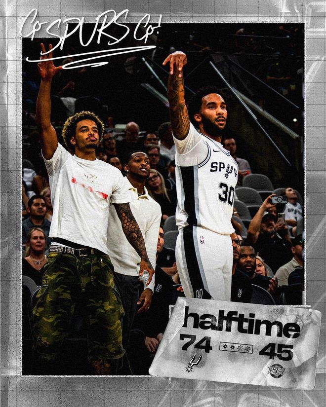 马刺队:文班亚马出战16分钟得到9分10篮板7助攻3封盖6失误,凯尔登16分,尚帕尼16分4篮板,弗拉格勒10分6助攻,布莱恩特15分,科内特16分4篮板。