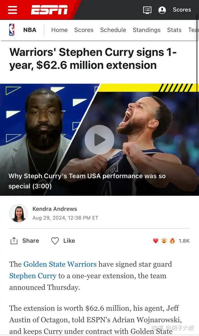 库里是NBA里目前改变了一个时代的球员,多少钱都可以给,用钱来说库里是苍白的,改变了篮球玩法的球员。
