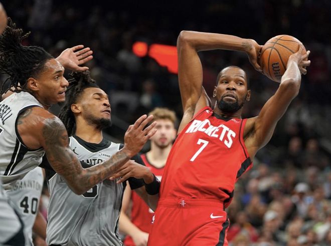 北京时间11月8日,NBA杯小组赛,火箭对阵马刺。本场比赛火箭上来占据主动,可马刺随后追上比分,之后陷入拉锯战,火箭之后一度拉开分差,马刺半场前一波12-0攻势反超,下半场马刺继续占据主动,火箭一直咬着比分可就是无法更进一步。最终,火箭110-121不敌马刺,5连胜就此终结。
