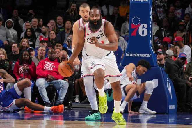 快船:哈登28分6篮板5助攻,桑德斯3记三分17分,科林斯11分,祖巴茨14分13篮板,巴图姆3记三分11分。