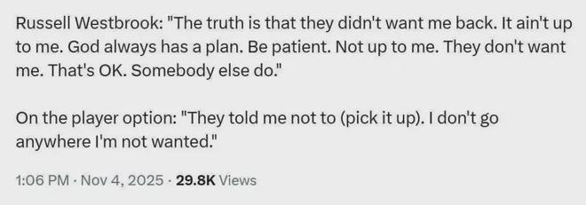 老是有人问威少今夏为何拒绝执行球员选项离开本赛季至今以12胜4负高居西部第三的掘金?据本人的回答,不是他想离开掘金,而是掘金不希望其留队。